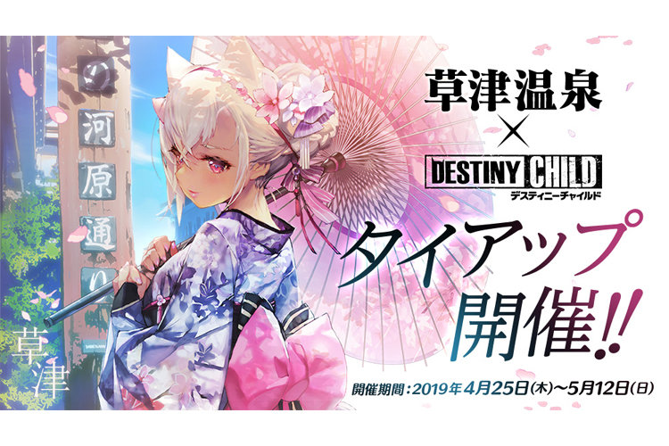 お知らせ ゲーム情報 2019年05月10日 【5月10日追記】「草津温泉」×「デスティニーチャイルド」タイアップ!追加情報を公開!! 【5月10日追記】草津温泉タイアップ「草津観光 ドキドキスタンプラリー」達成報酬について、本日5月10日(金) 14:35より「クリアファイル」の追加配布を開始いたしました。ご希望の方はスタンプラリー台紙をお持ちの上、草津温泉バスターミナル1F特設ブースへお越しください