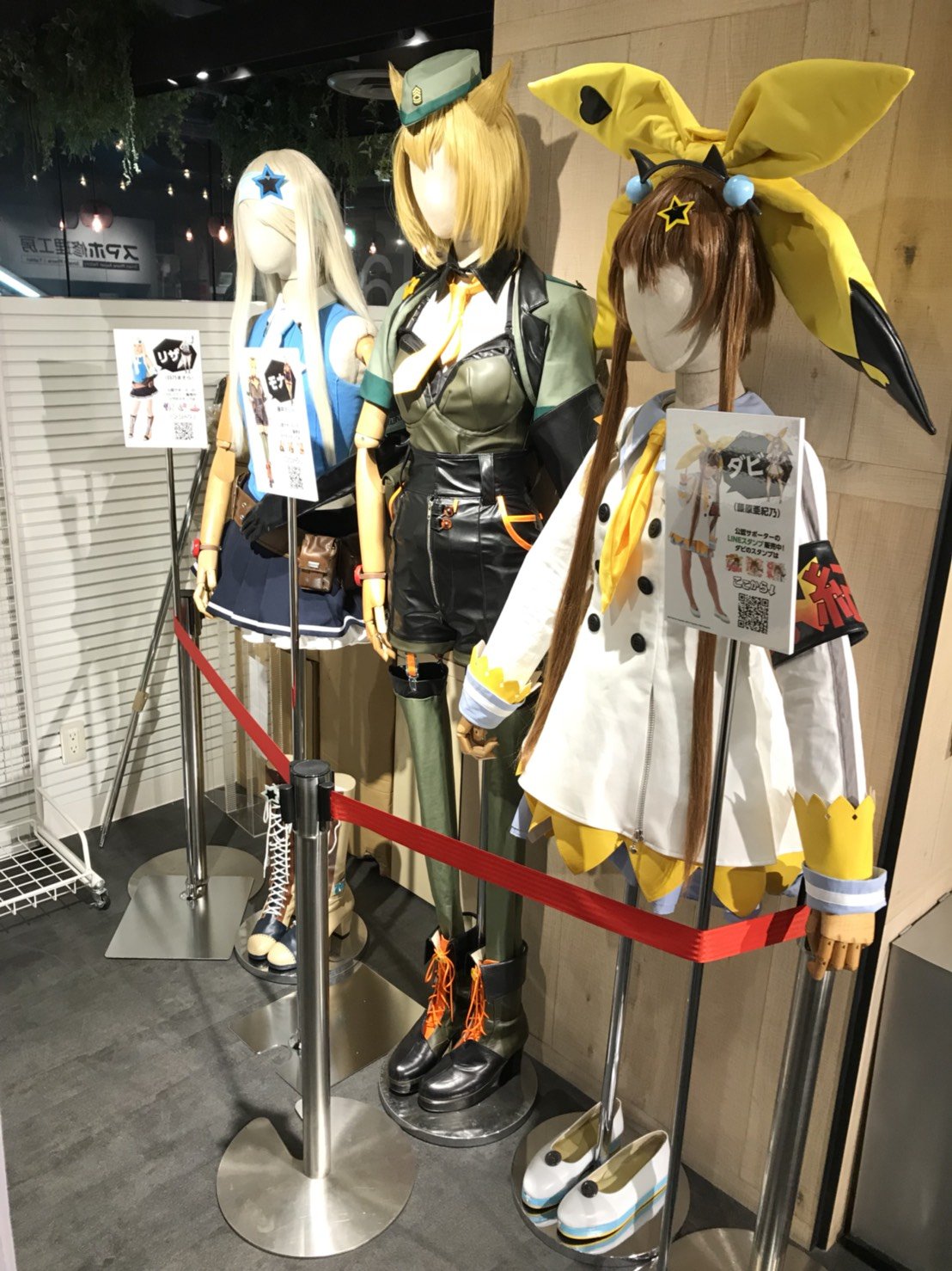 『デスティニーチャイルド』をサポートする、公認サポーターのモナ役「藤井 マリー」さん、リザ役「日乃 まそら」さん、ダビ役「藤原 亜紀乃」さんが着用しているコスプレ衣装を展示いたします。